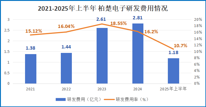 于是,公司瞄准缺口,大力投入研发。2021-2024年,其研发费用从1.38亿元增长至2.81亿元,研发费用率维持在15%左右的高水平。