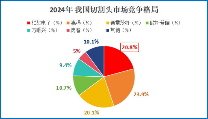 当下,柏楚电子在激光切割头市场的追赶势头也很强劲:2024年市占率已攀升至约20.8%,仅比行业龙头嘉强激光落后3个百分点,稳坐国内“第二把交椅”。